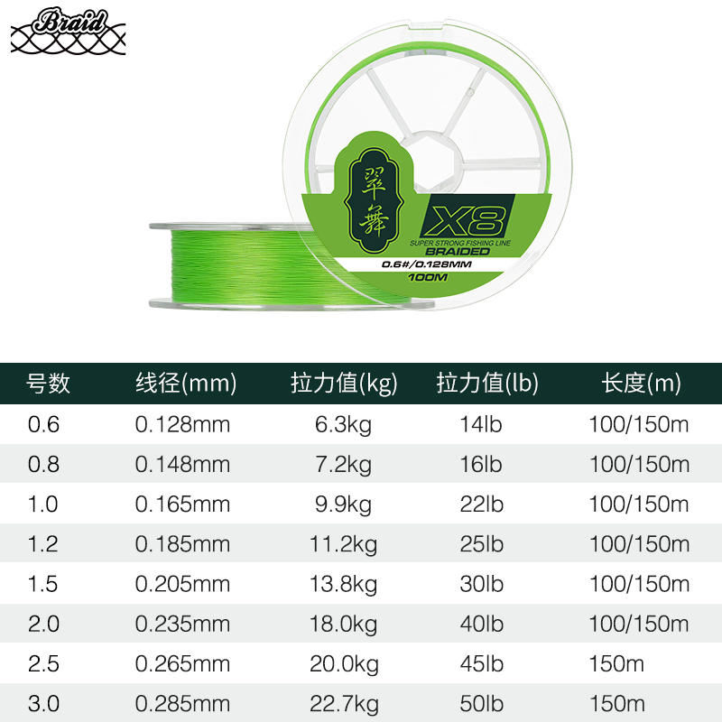 CudDance 8 woven PE line 100 m Cuidance 8 woven PE line 150 m