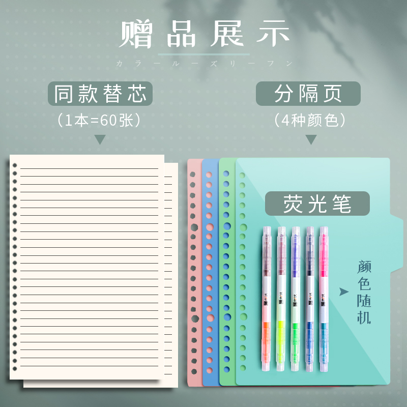 (Mixed color)A5 horizontal line 4 packs and free 4 packs for the core