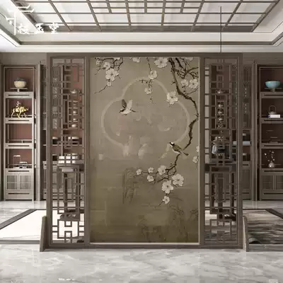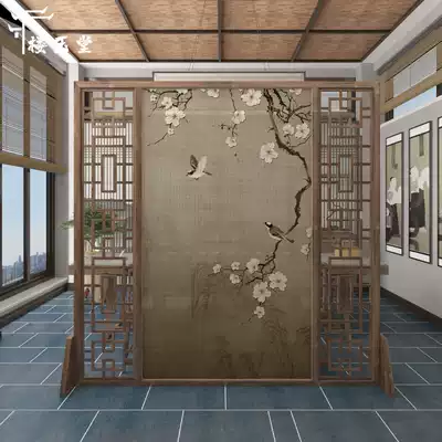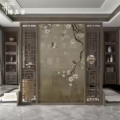 New Chinese style screen partition living room entrance entrance Office Hotel room hollow simple modern solid wood seat screen