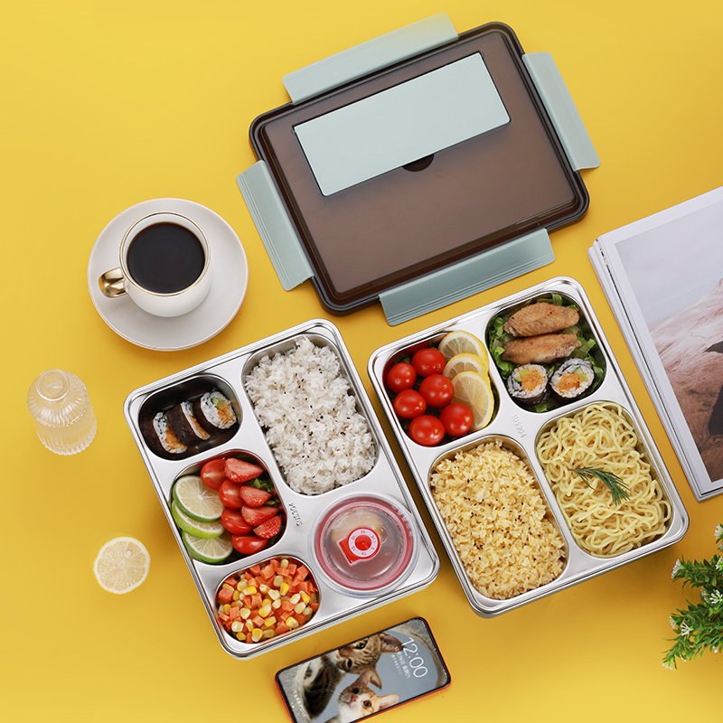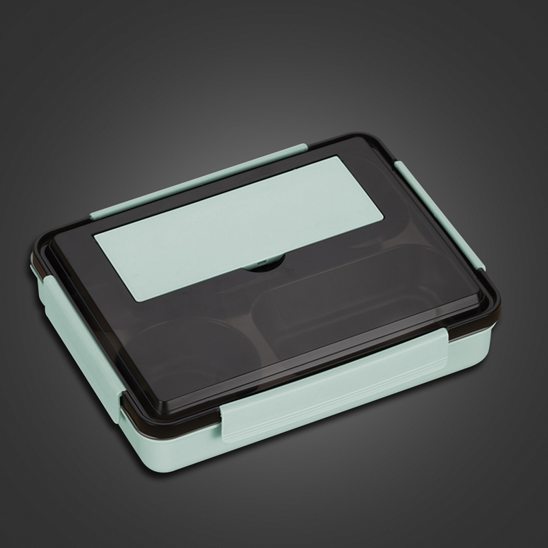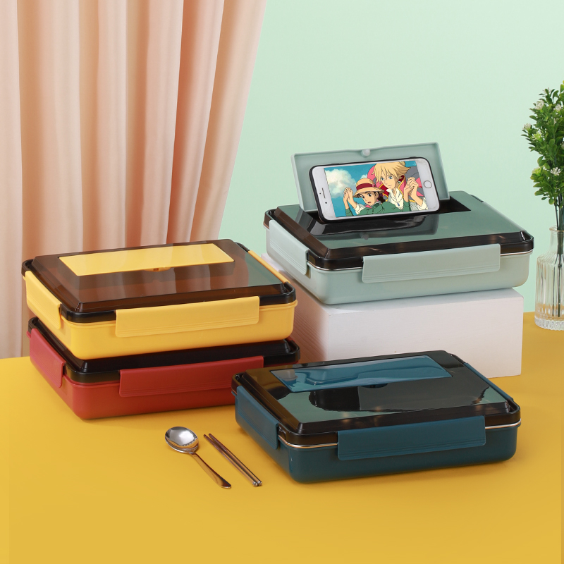(middle number three) green lunch box spoon chopstick (medium number three grids) blue lunch box spoon chopstick (medium number three grids) yellow lunch box spoon chopstick (middle number four grids) green lunch box spoon chopstick (medium number four) blue