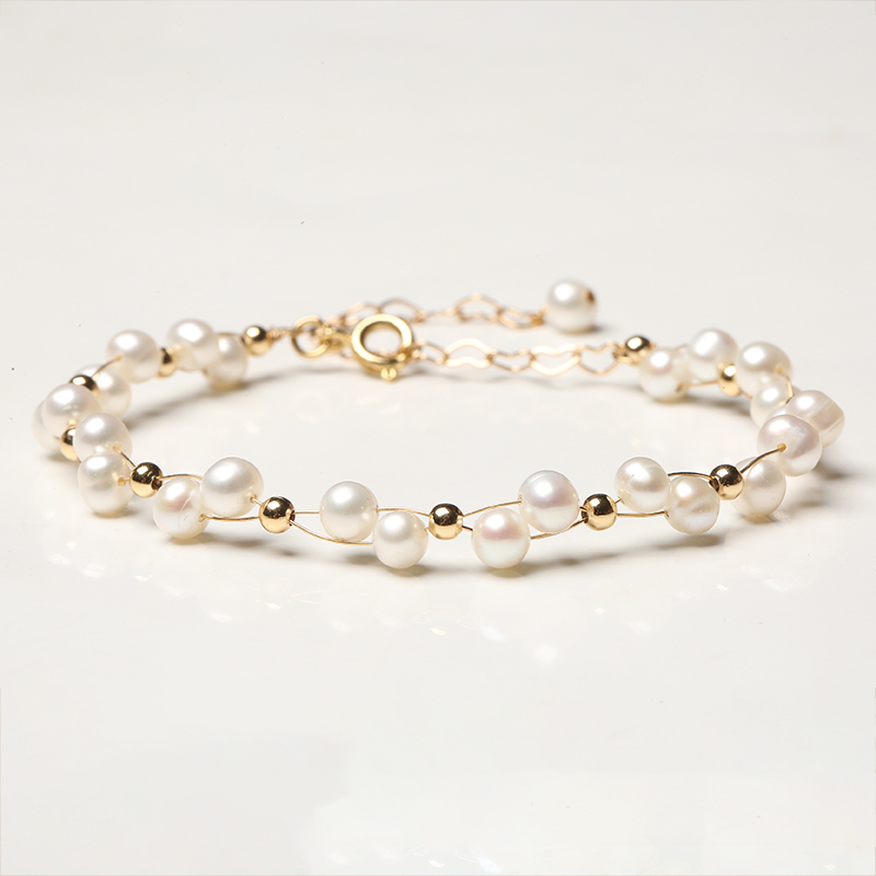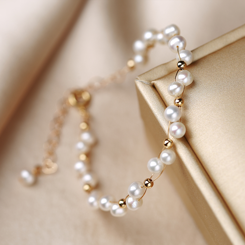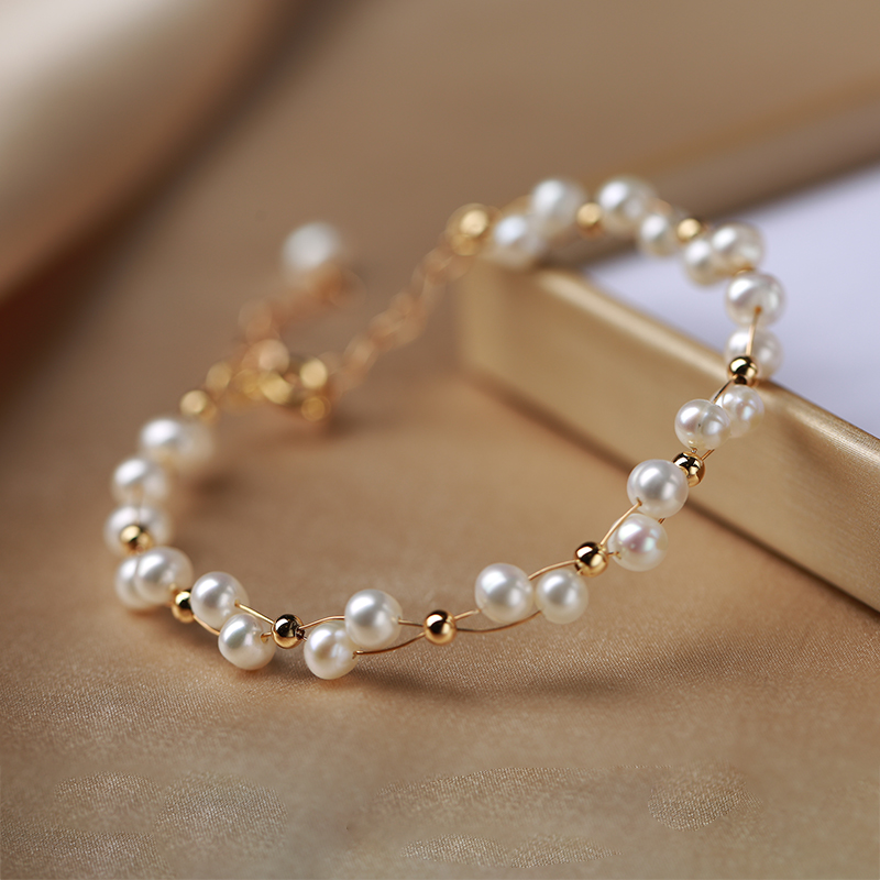 Su Chen natural freshwater pearl hand-held bead female summer ins niche design 14k gold woven fancy simple style