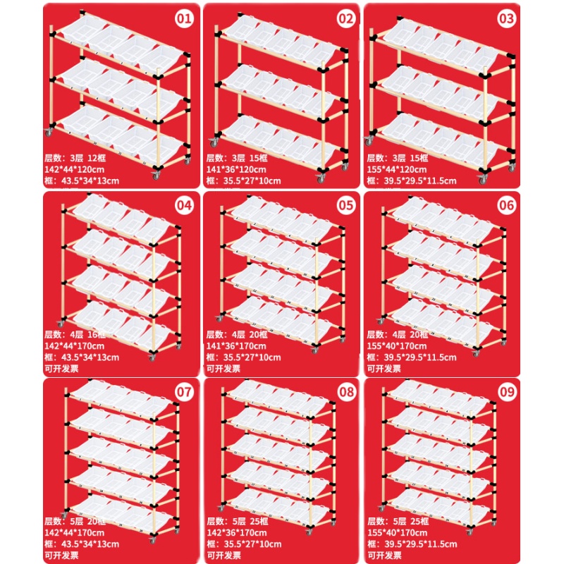 01 Three layers of 12 frames 142*36*1200cm02 Three layers of 15 frames 141*40*120cm03 Three layers of 15 frames 155*40*120c