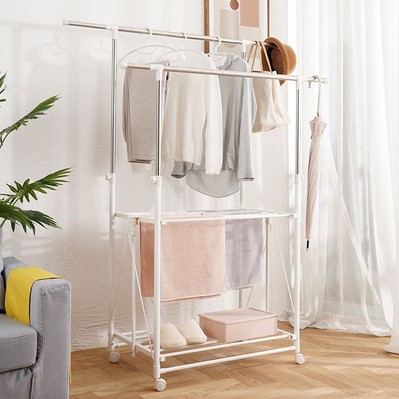 SHESHOME exempt from installation of clothes hanger floor folding double-lever indoor balcony home outdoor telescopic clotheshorse