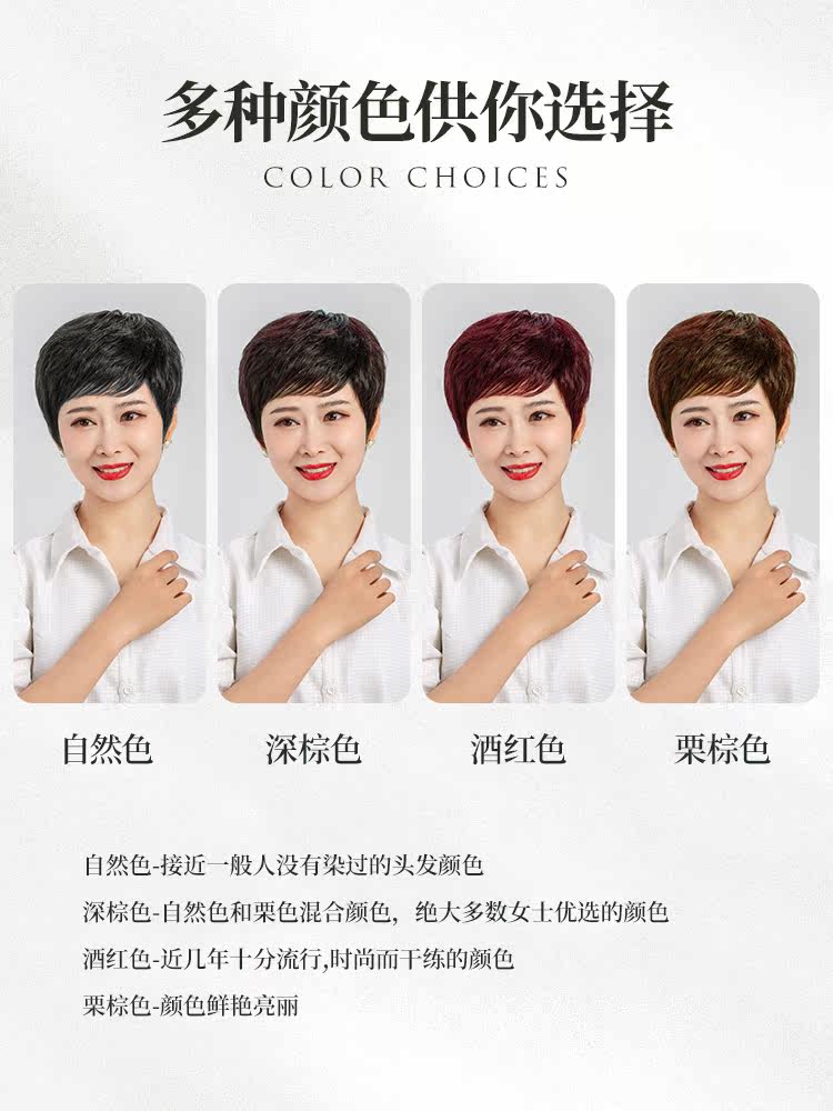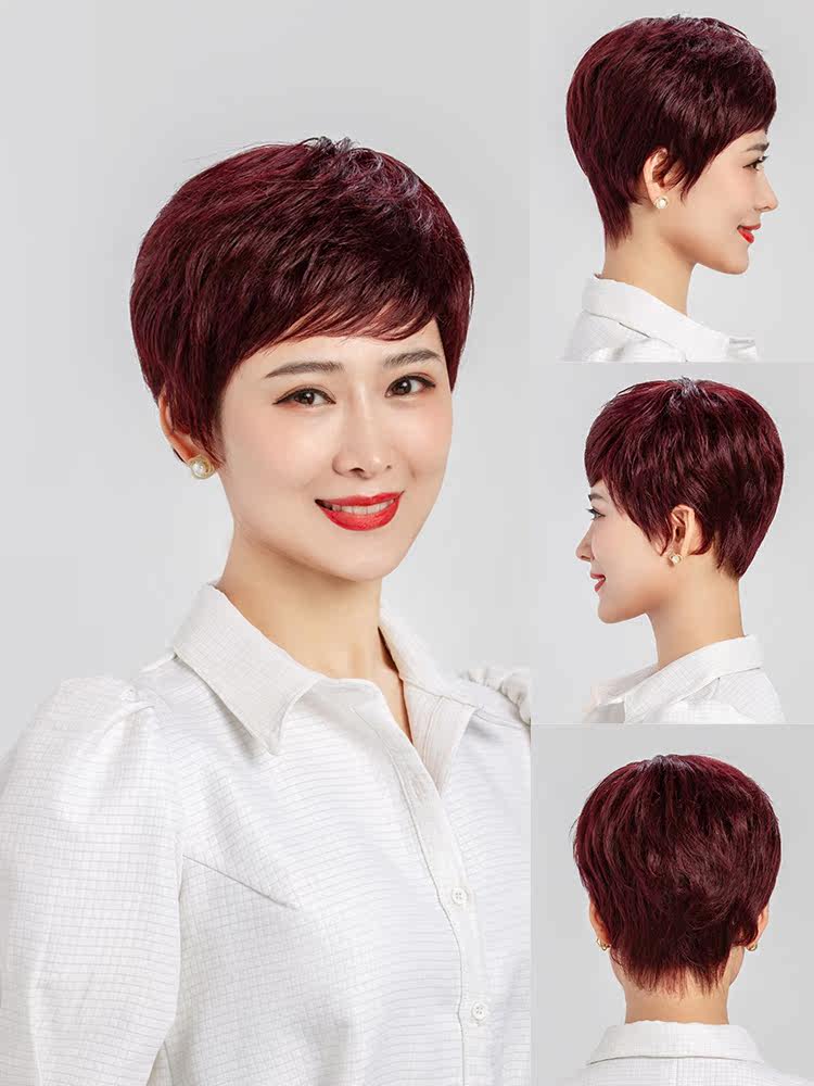 Wig female short hair summer wig set real wig real hair silk short curly hair full Head Lady middle-aged and elderly mother straight hair