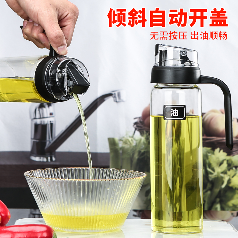 Automatic opening and closing glass oil pot kitchen sauce bottle anti-leaking large capacity multi-specification heat-resistant vinegar material wine oil bottle
