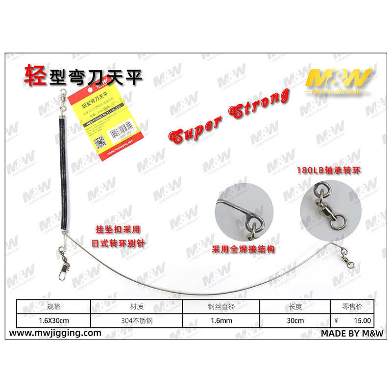 MW light scimitar balance sea fishing boat fishing accessories 304 stainless steel 30CM arc boat fishing deep sea offshore accessories