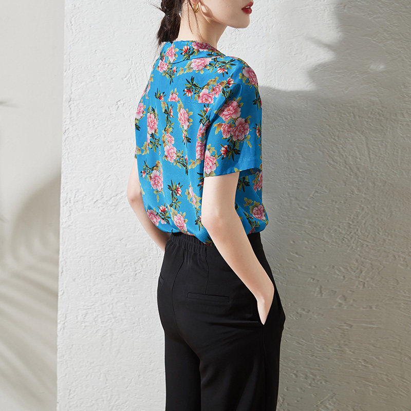 (Package) silk shirt women's short-sleeved 2022 summer new temperament all-match mulberry silk shirt top