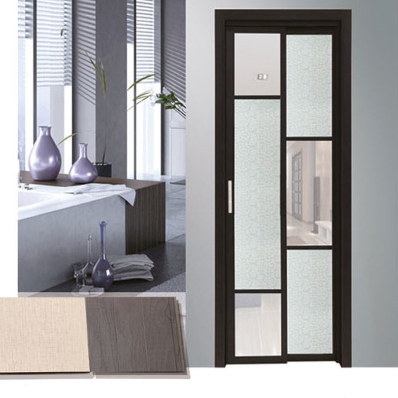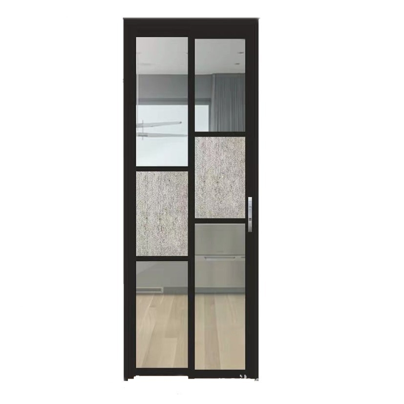 Narrow frame hanging rail PDPT push pull flat folding sliding door kitchen toilet aluminum alloy glass door customization