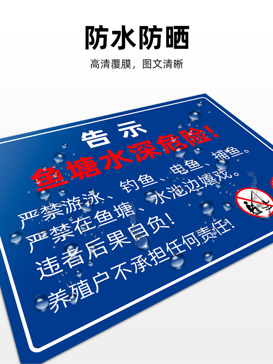 Aluminum plate- Fish pond water deep dangerous yellow aluminum plate - water depth danger do not close to yellow aluminum plate - fishpond water depth danger blue aluminum plate - is strictly prohibited to play aluminum plate in fishpond - water depth danger do not