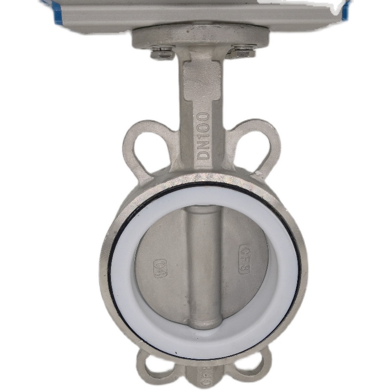 Pneumatic 304 stainless steel clip butterfly valve D671X F PTFE rubber seal high temperature resistance acid and alkali resistance valve 100
