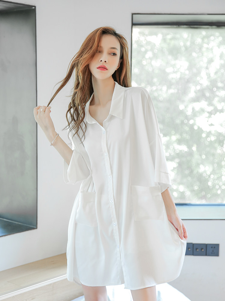 Sleeping Skirt Woman Summer Ice Silk Thin 2021 New sexy white shirt with long version of summer real silk tennis red pyjamas