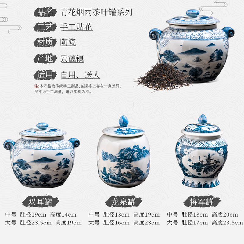 Jingdezhen Ceramic Tea Leaf Jars Seal Tank Large Green Flowers Chinese Style Home Storage Living-room Bogu Shelf Landscape Pendulum