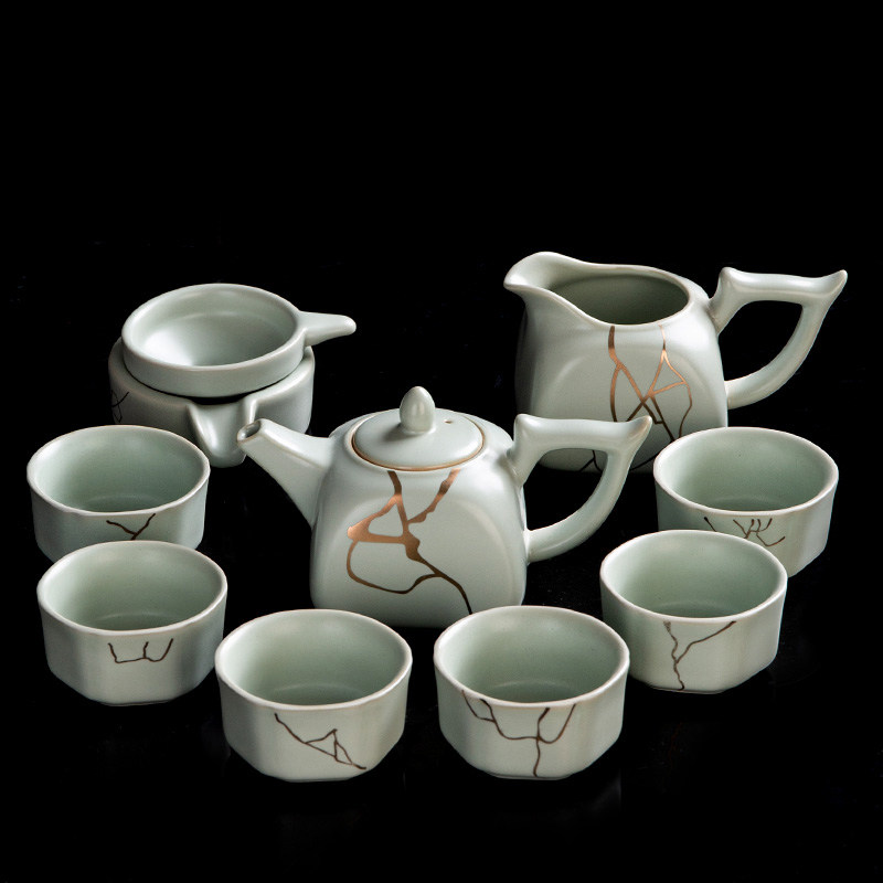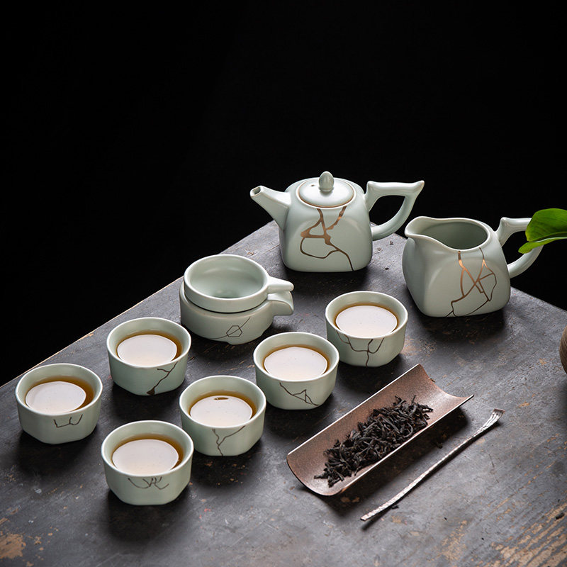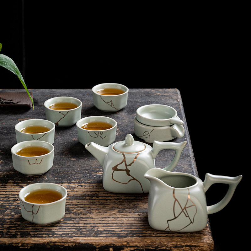 Ru Kiln Open Sheet Kongfu Tea Furniture Set Group Ru Porcelain Sketching Household Ceramic Teapot Tea Cup Chinese Whole Set Tea Set Gift Box