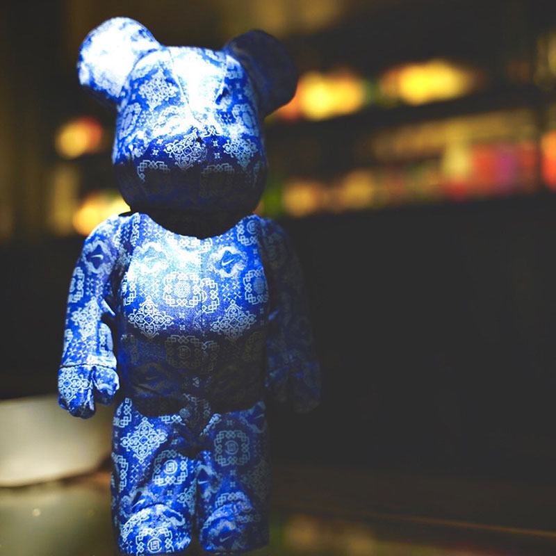 bearbrick400 % Violent Bear Building Blocks Bear Tide Play Model Paparazzi swing piece model to decorate blue silk