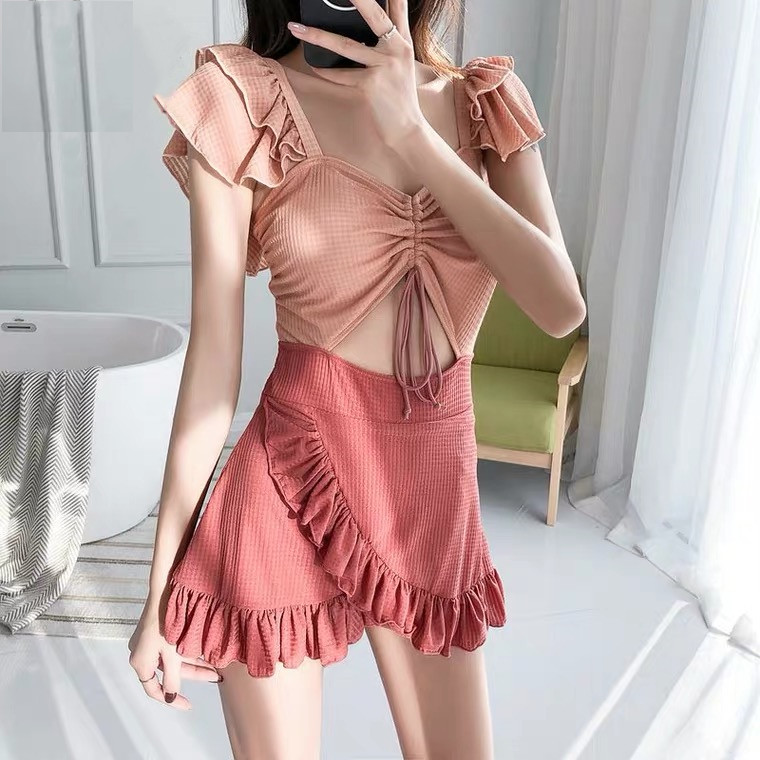 2021 Summer new ins small breasts gather to lean conservative shading students Two style spa holiday bathing ladies