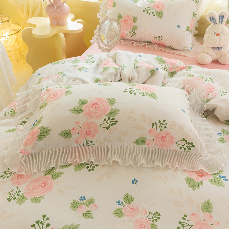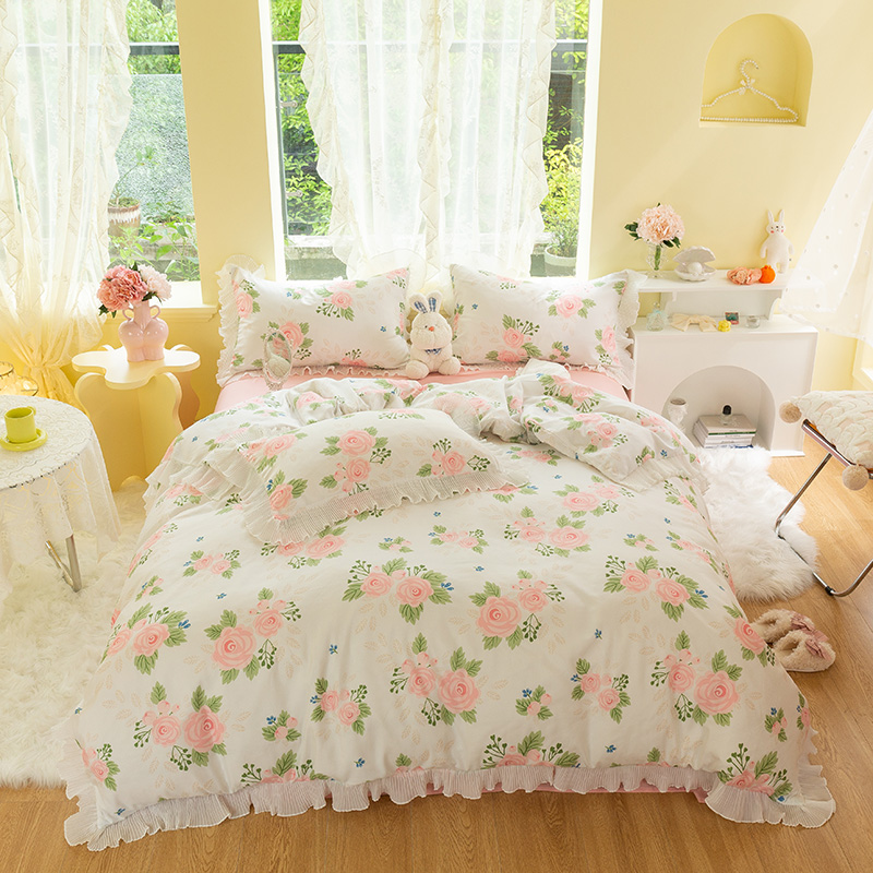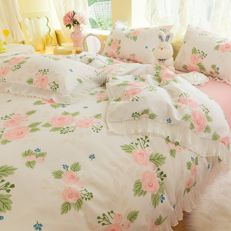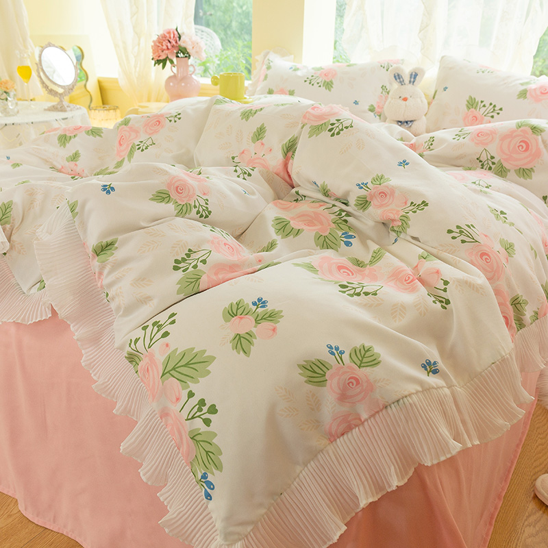 Small fresh bedding bed single quilt cover bed four-piece set summer summer spring summer pink princess style small flower three-piece set