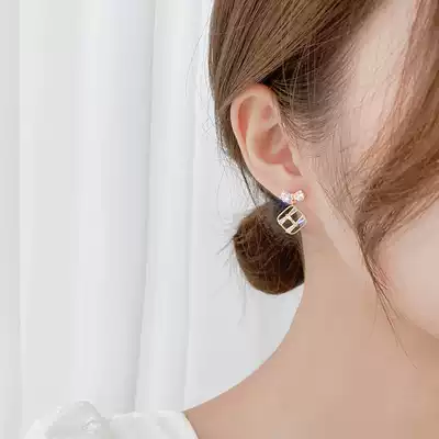 Bow stud earrings female sterling silver earrings niche design sense advanced letter autumn and winter earrings 2021 New Tide