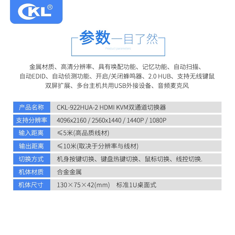 cKL kvm switcher dual channel HDMI2 0 4K60hz video screen cutter two in one out computer screen keyboard mouse sharer audio microphone USB 922HU