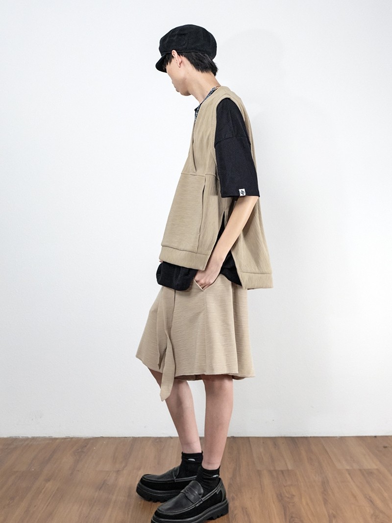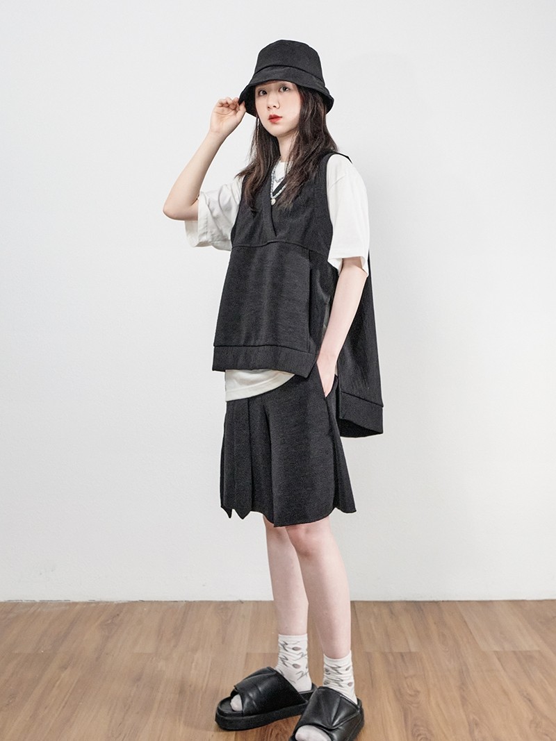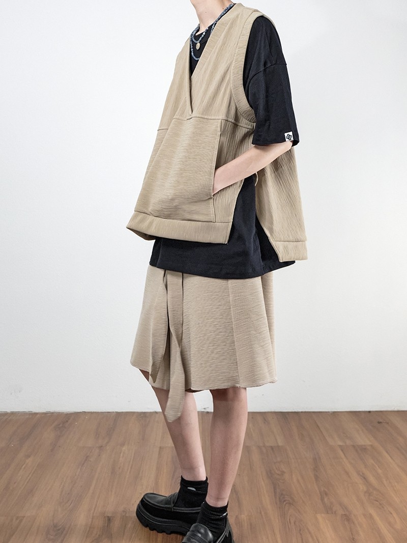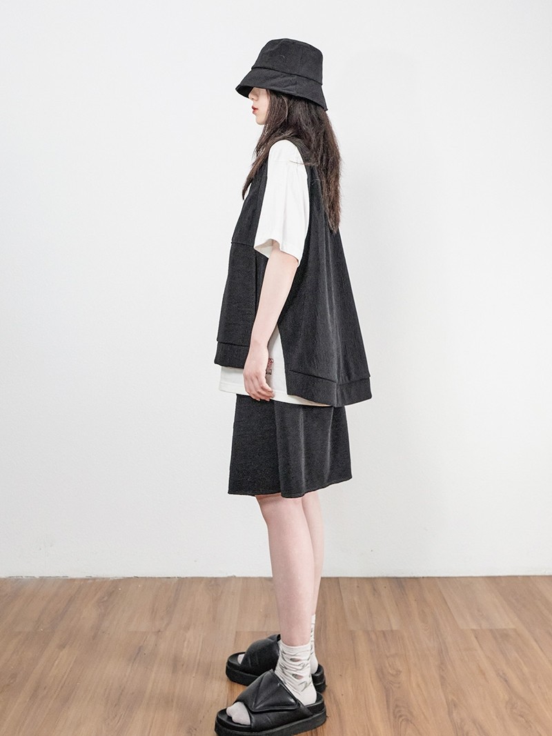 BEEKITE silhouette pleated texture robe vest vest loose sleeveless vest waistcoat summer retro all-match