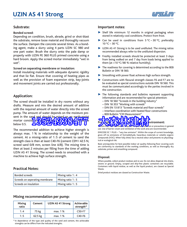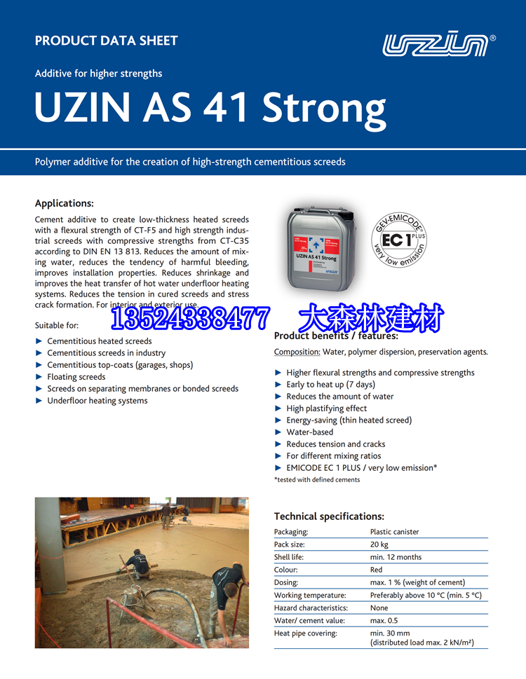 Youcheng uzin high-strength cement-based mortar additive AS41 Strong Germany imported spot new product recommendation