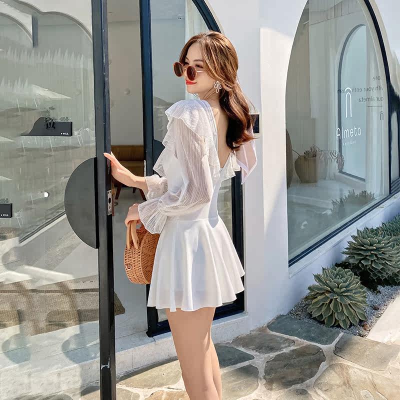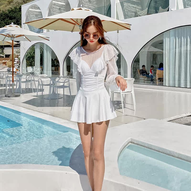 Swimsuit female Summer Concorde skirt shading and thin fitness sexy long sleeve long sleeve sunscreen steel button gathering conservative