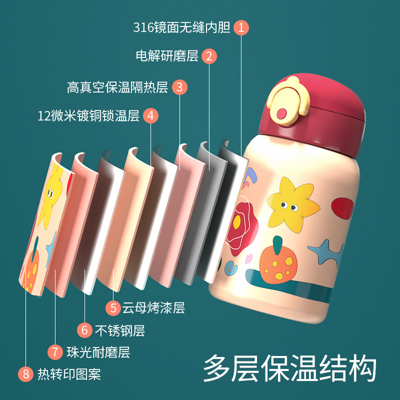 Insulated cup female men's children's water glass large capacity 316 food grade stainless steel portable outdoor student cute-Taobao