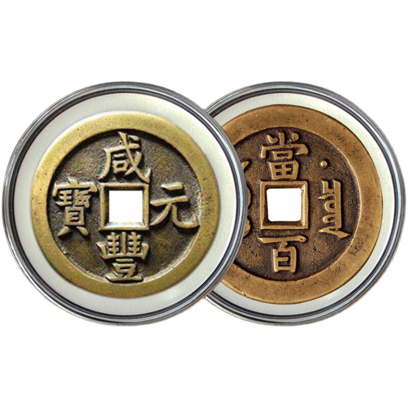 Xianfeng Yuanbao Tianqi Mountain ghost zodiac large coin collection box containing round box ancient coin copper money to spend money to protect the box