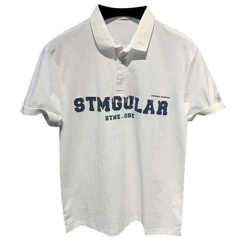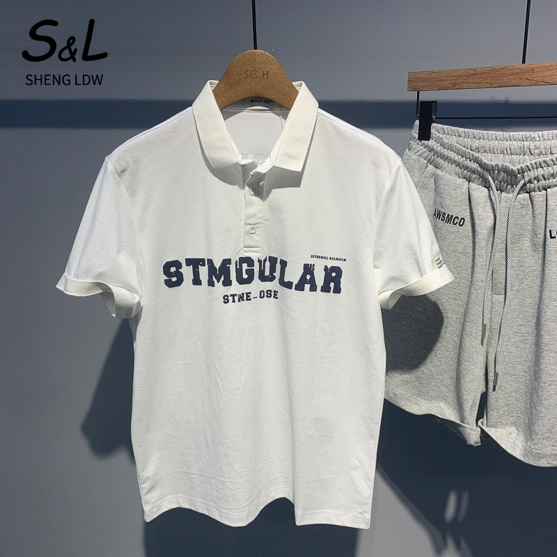 Fashion trend letter printing short-sleeved polo shirt men's 2022 summer new Korean version loose and handsome lapel T-shirt