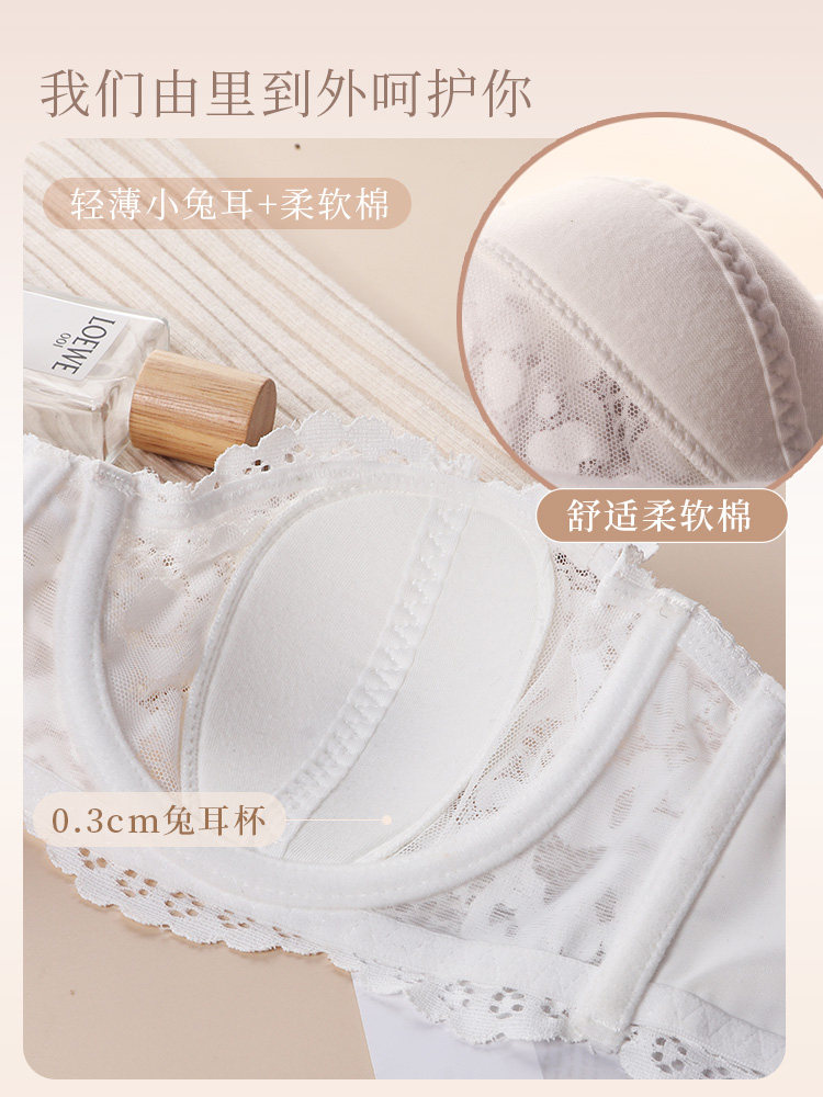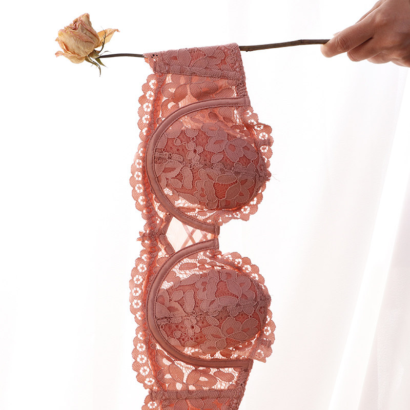 Strapless underwear women's thin big breast small chest gather invisible non-slip bandeau sexy lace half cup bra