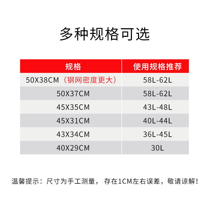 40 * 29CM43 * 34CM45 * 31CM45 * 35CM50 37CM50 * 37CM50 * 38CM (steel mesh density larger) dedicated section (inner diameter 50 * 4