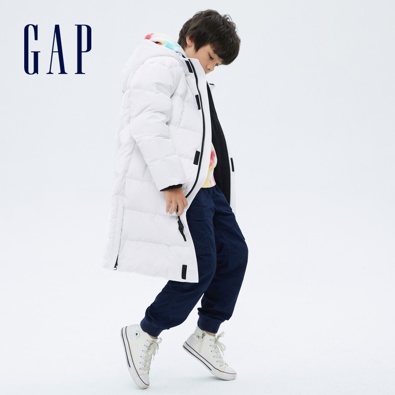 Gap boys thick long layered hooded down jacket 707322 21 winter new children's warm coat