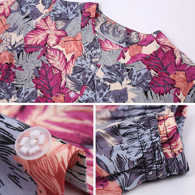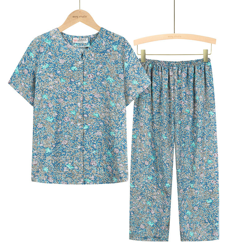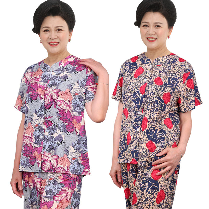 Middle-aged and elderly homewear suit mother cardigan elderly clothes old lady pajamas female spring and autumn imitation ice silk short-sleeved summer