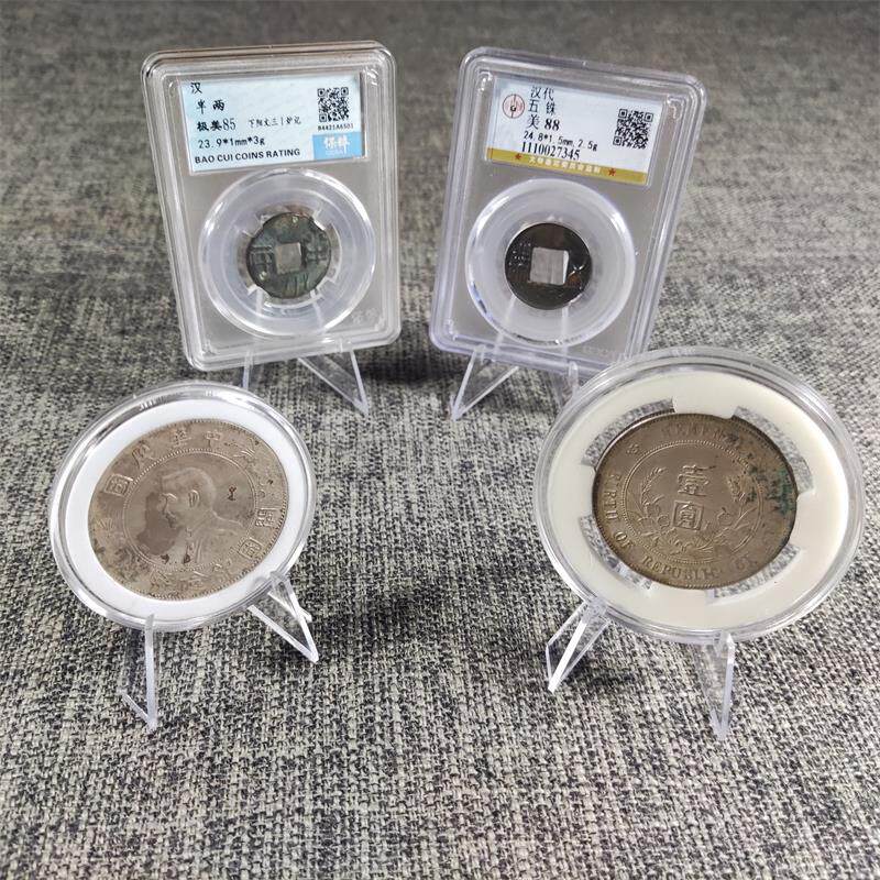 Round box bracket Coin transparent triangle shelf commemorative coin ancient coin crystal box identification box Coin box display stand