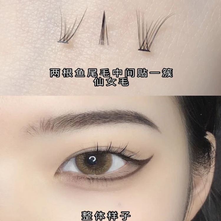 False eyelashes self-adhesive disposable A-type false eyelashes Yu Shuxin with the same fairy fishtail sandwich single cluster mixed pack