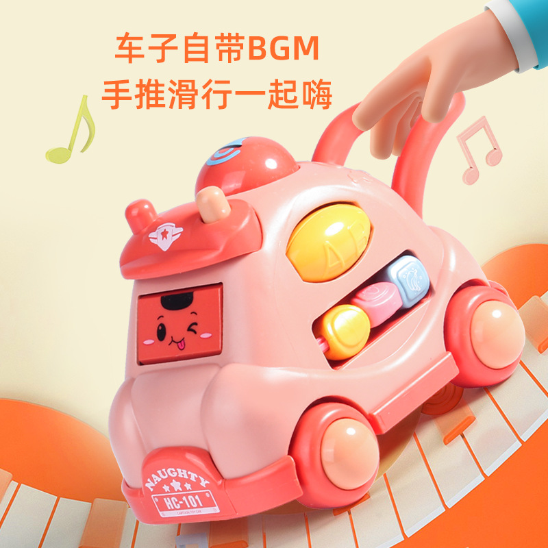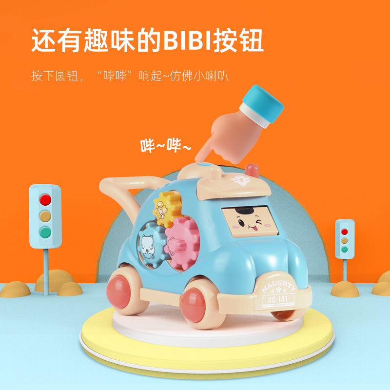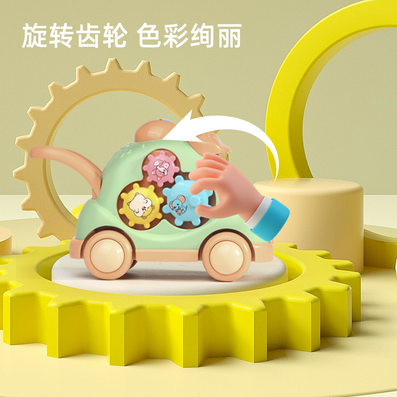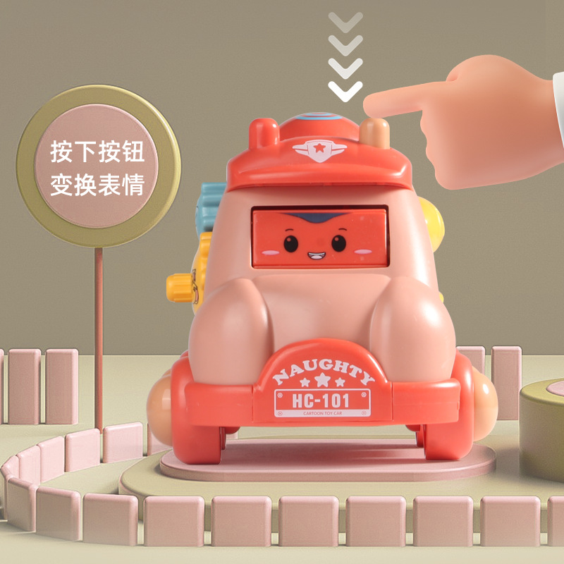 Cute polyhedron trolley built-in music light variable face a variety of expressions rotating gear children's toy car