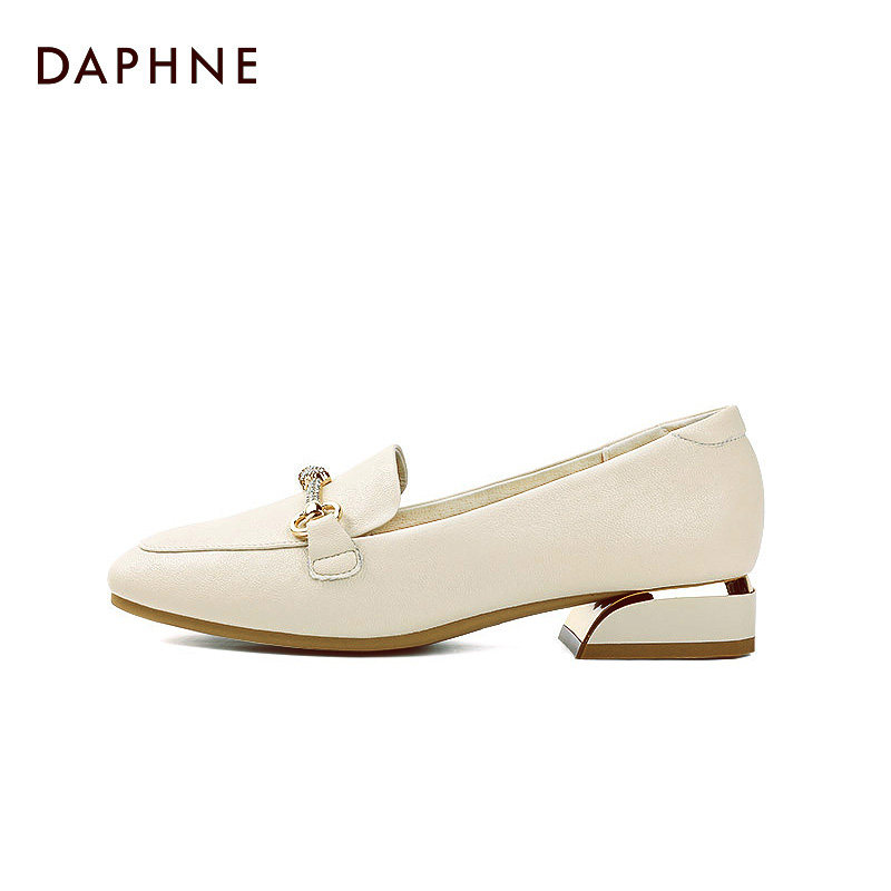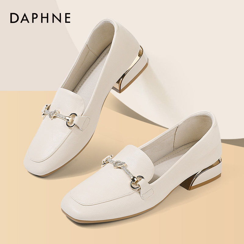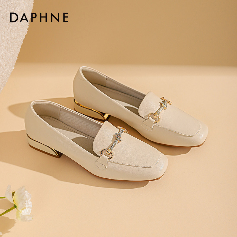 Daphne single shoes women's summer 2022 new spring white coarse heels Inn wind small leather shoes women flat-bottomed Lefoe shoes women
