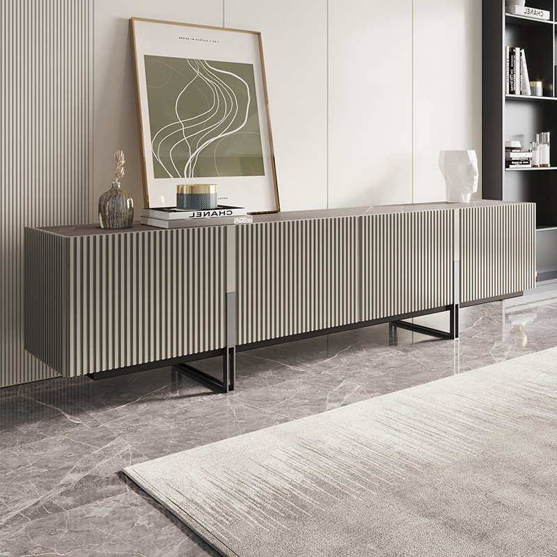 Italian Minimalist Superior Grey TV Cabinet Tea Table Combination Small Family Modern Light Lavish Baking Varnish Ground Cabinet Home Living-room Cabinet
