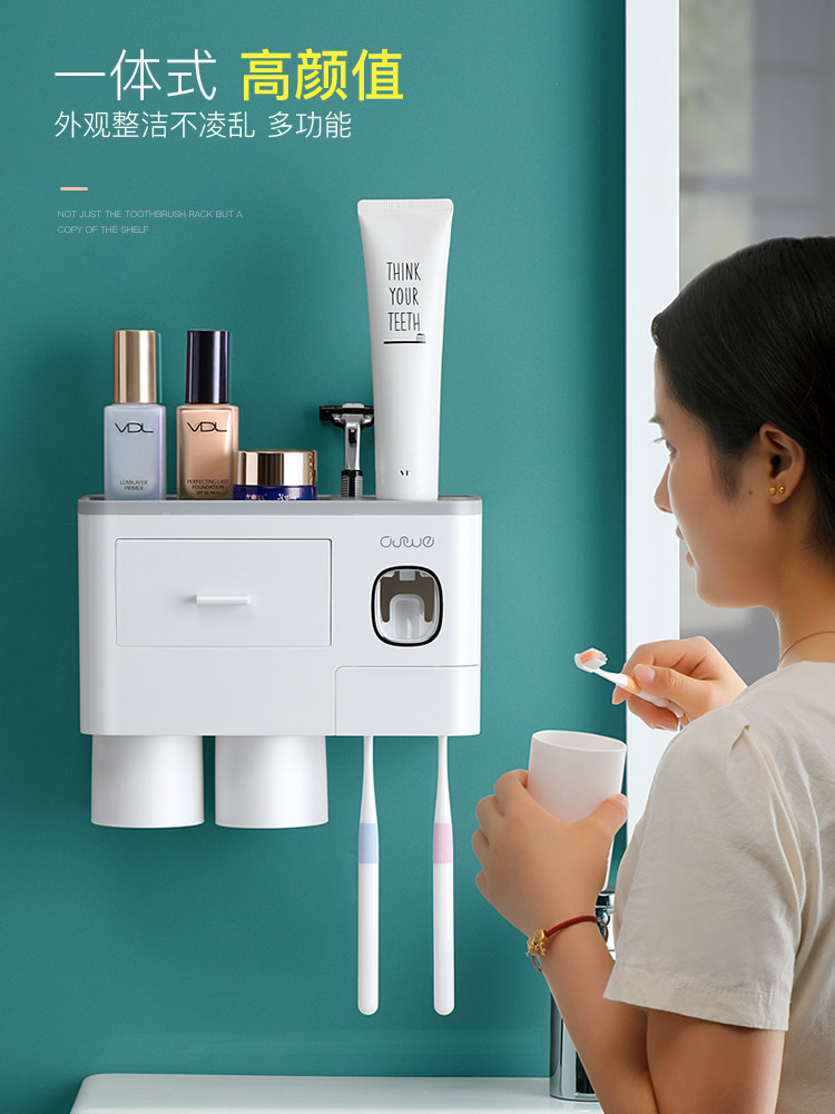Punch-free automatic squeezer squeeze artifact bathroom wall-mounted toothbrush rack set toothpaste device household