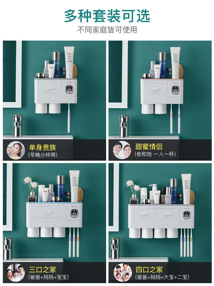 Couple double cups (with toothpaste squeezer) - light gray Couple double cups (with toothpaste squeezer) - sky blue Couple double cups (with toothpaste squeezer) - lotus root powder Family of three (with toothpaste squeezer) - light gray