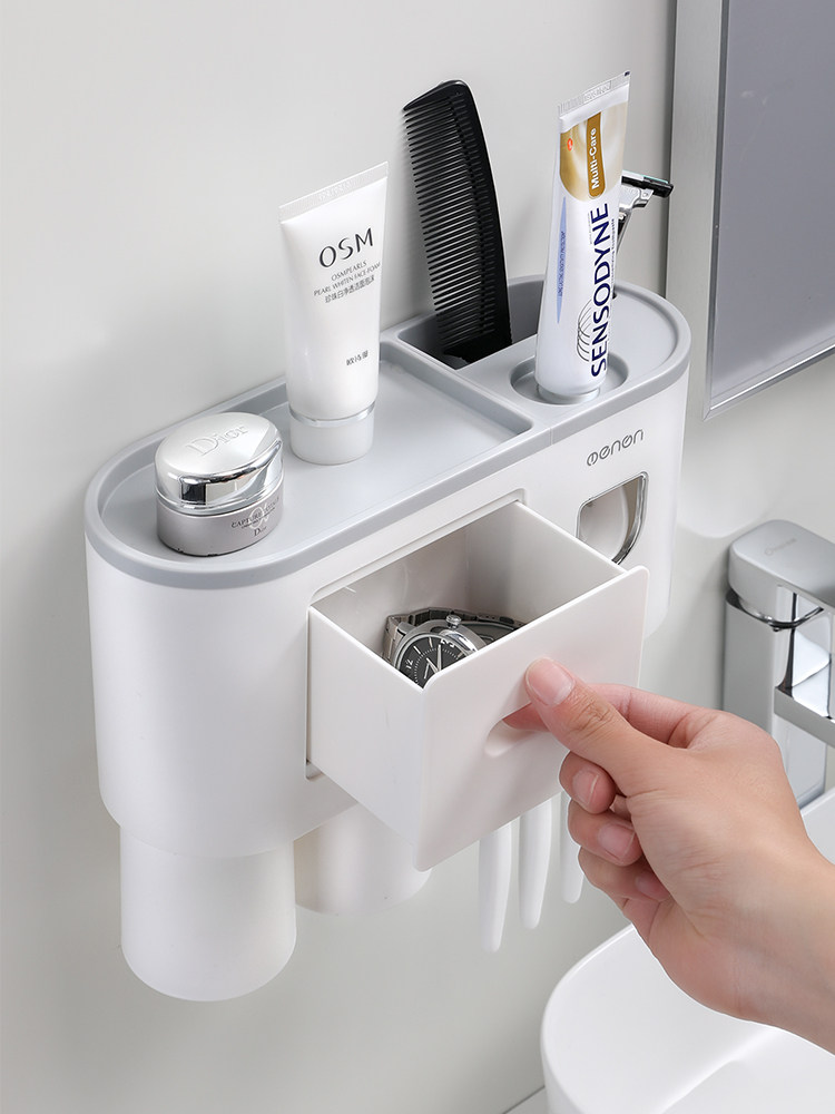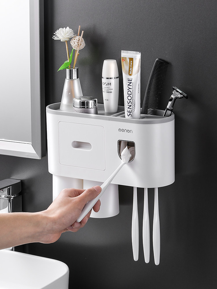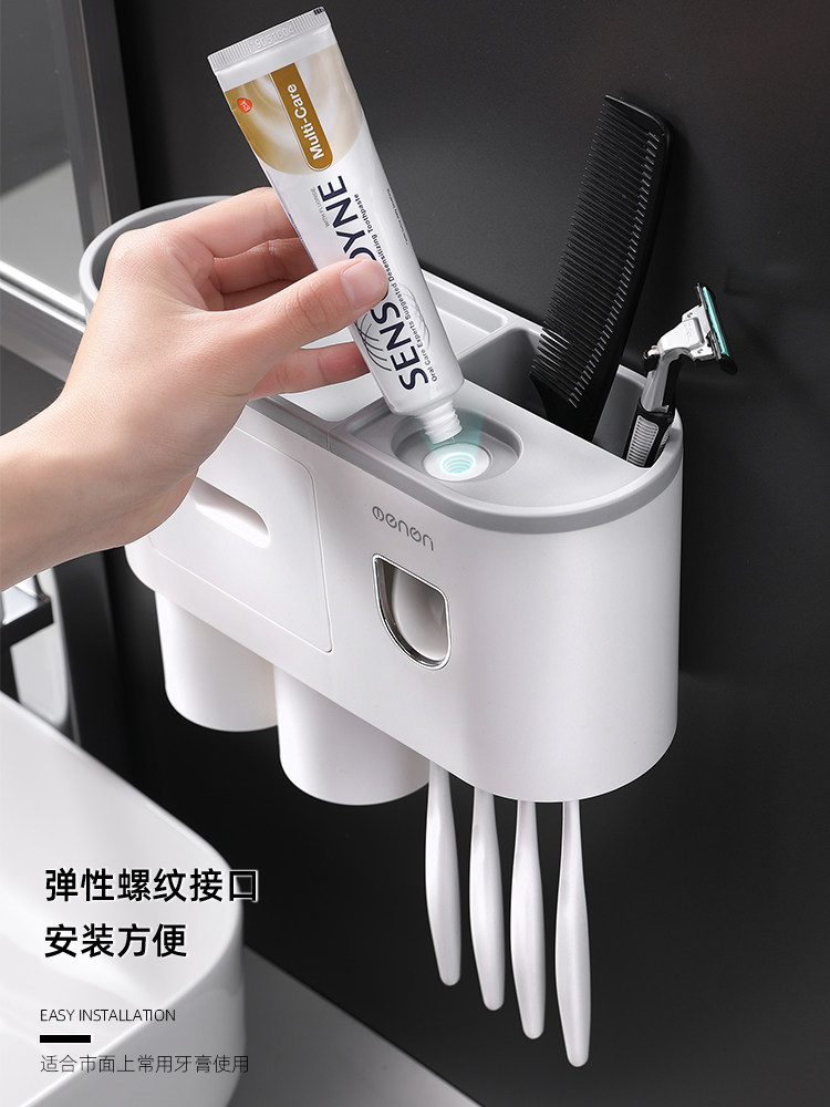 Toothpaste device wall-mounted bathroom toothbrush rack automatic squeezer set artifact free punching squeeze household