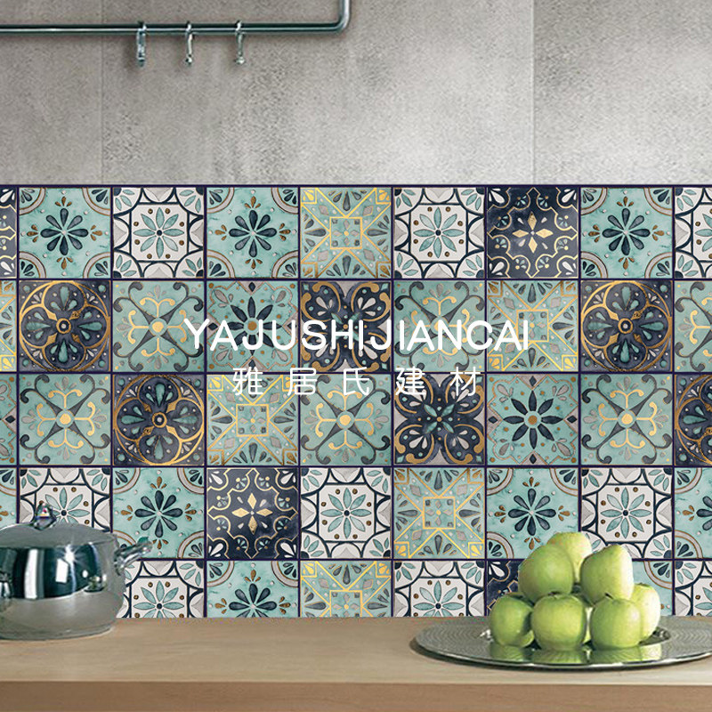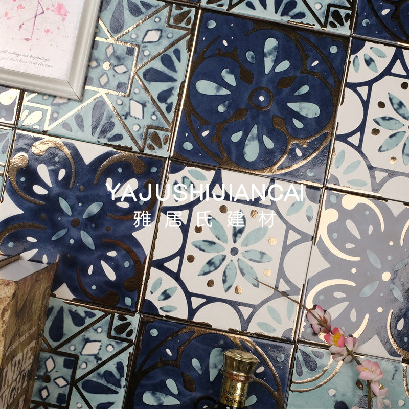 Blue light luxury Moroccan tiles Designer kitchen balcony floor tiles Vintage gold silk powder room bathroom tiles