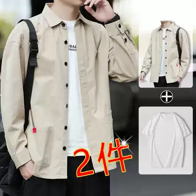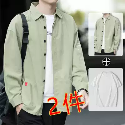 Long-sleeved shirt men's spring and autumn Korean version of the trend tooling shirt pure cotton summer thin jacket men's summer trend