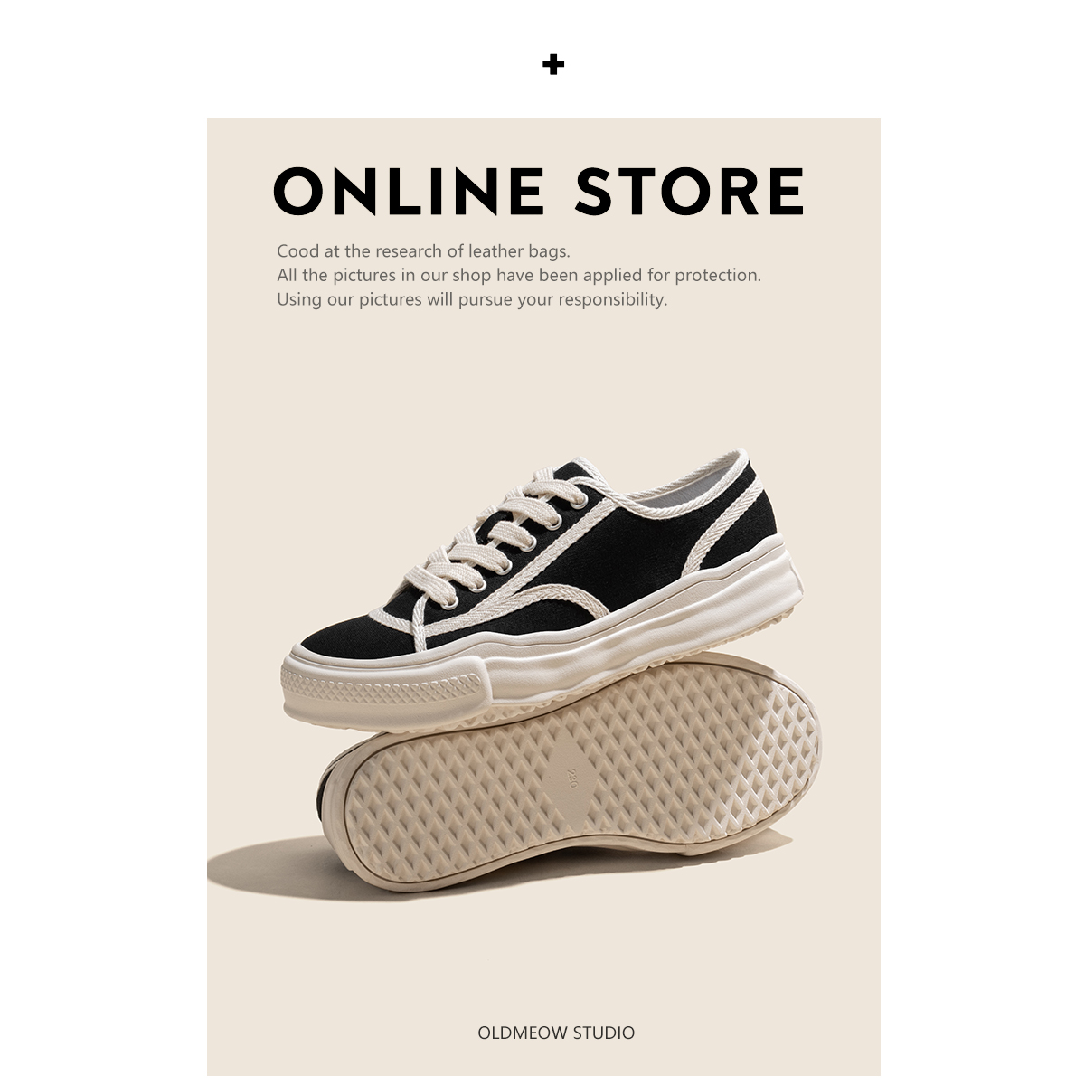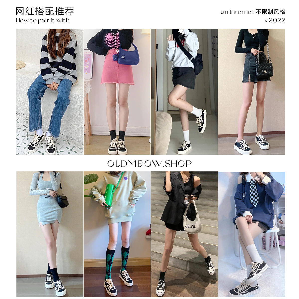 Old Meow's shop 2022 new canvas shoes in spring and autumn thick plate shoes flat solid white dissolved shoes