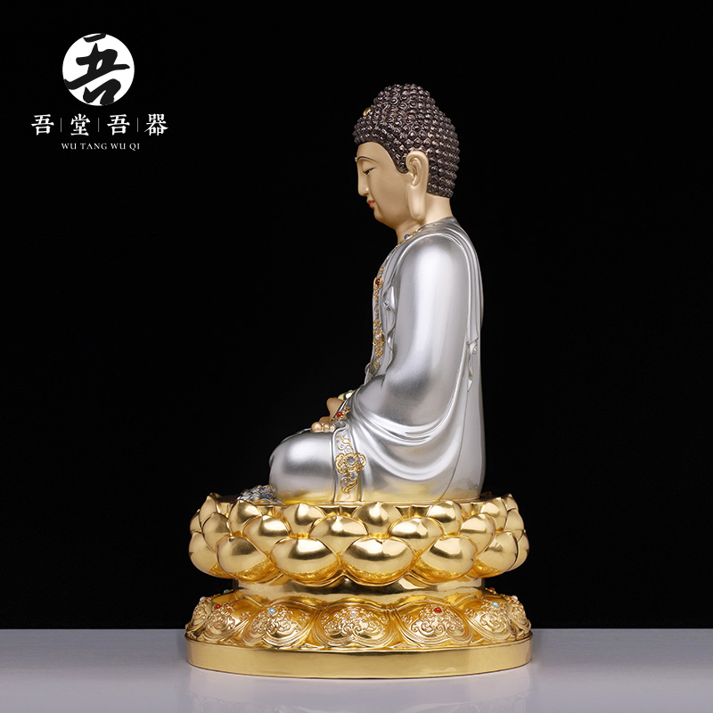 30cm satisfactory Three Paver Buddha "Sakyamuni Buddha" Pinch Silver Silver Inlaid Treasure 40cm satisfactory Three Paver Buddha's "Sakyamuni Buddha" Pinch Silver Ribbon 48cm Inlaid Treasure 48cm Successfully Three Paver Buddha "Sakyamuni Buddha"