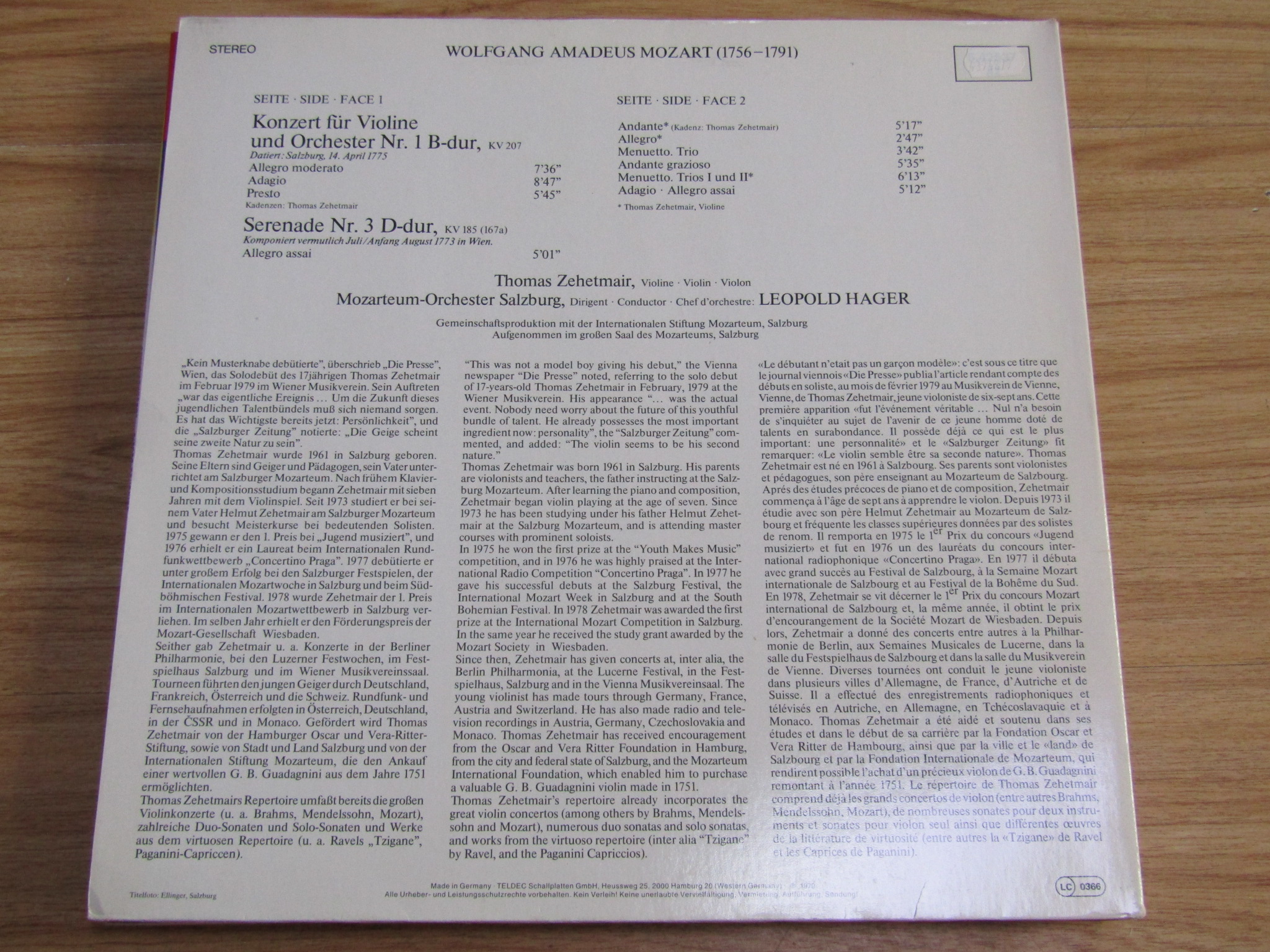 Zehetmair Zihmel to interpret Mozart Violin Concerto DE Edition LP Black glue 0138