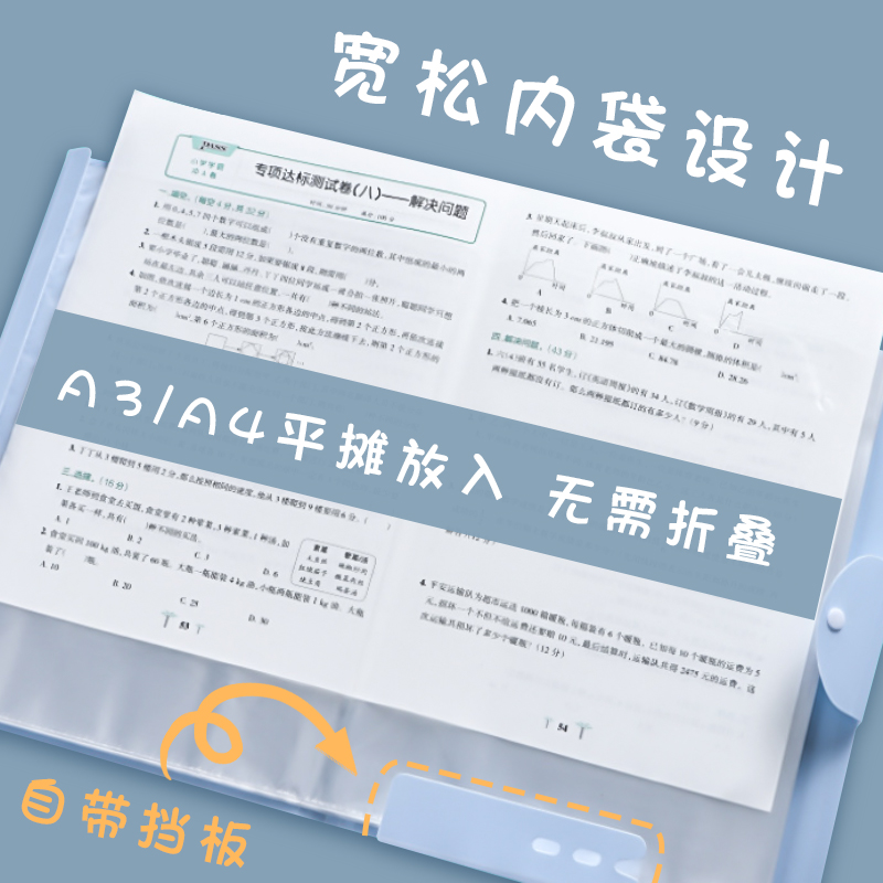 First-grade primary school students use test paper clips to store and organize folders classified high school a3 large-capacity junior high school student information book multi-layer multi-page 40-page classification clip insert transparent book put paper