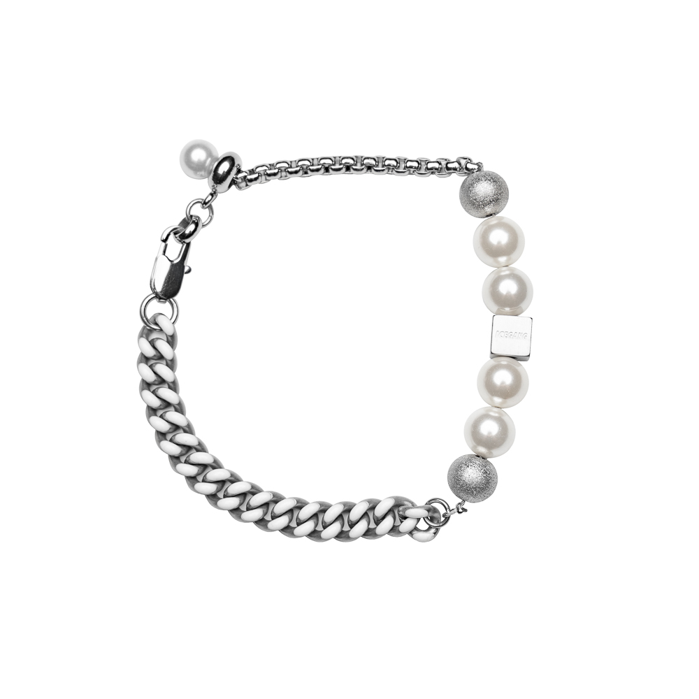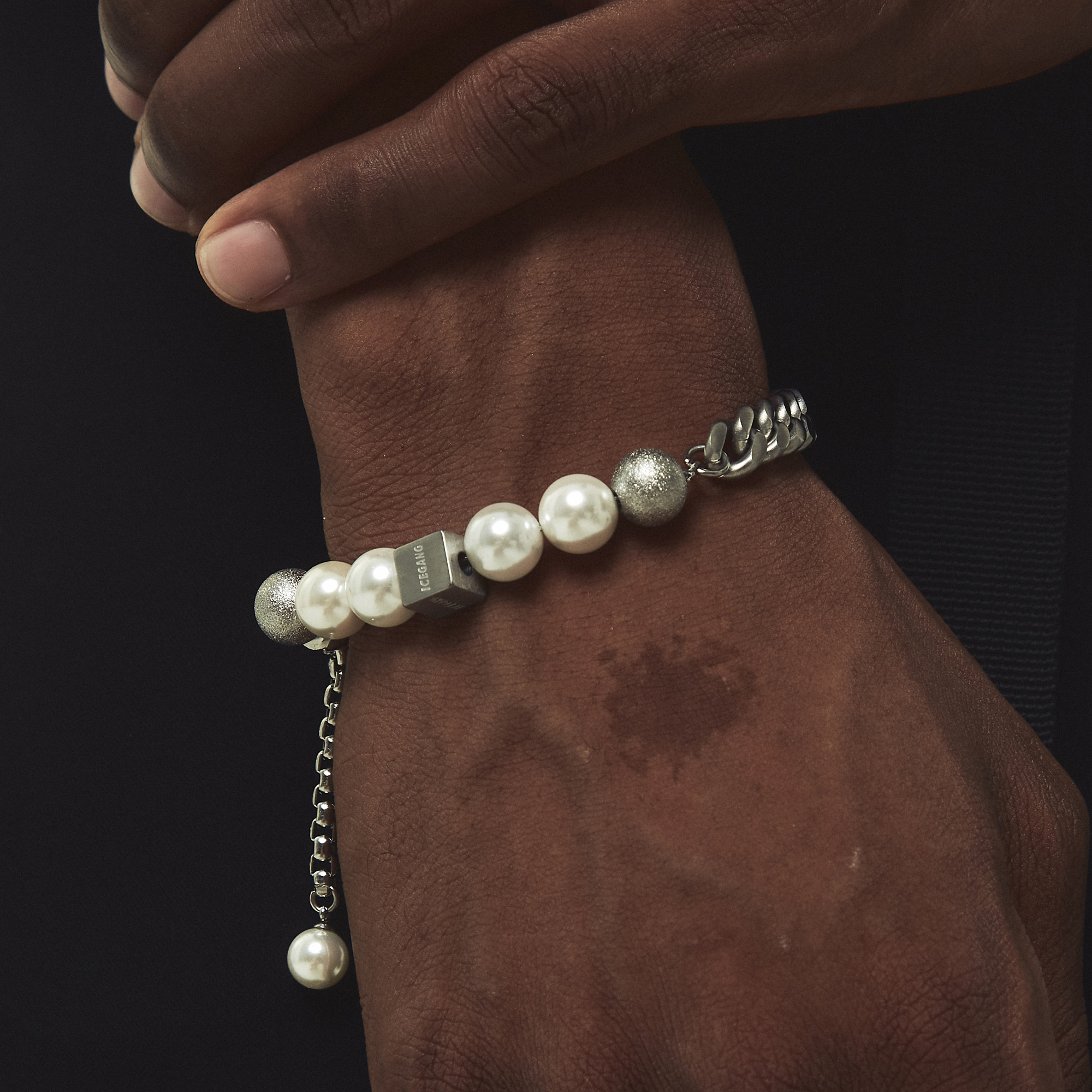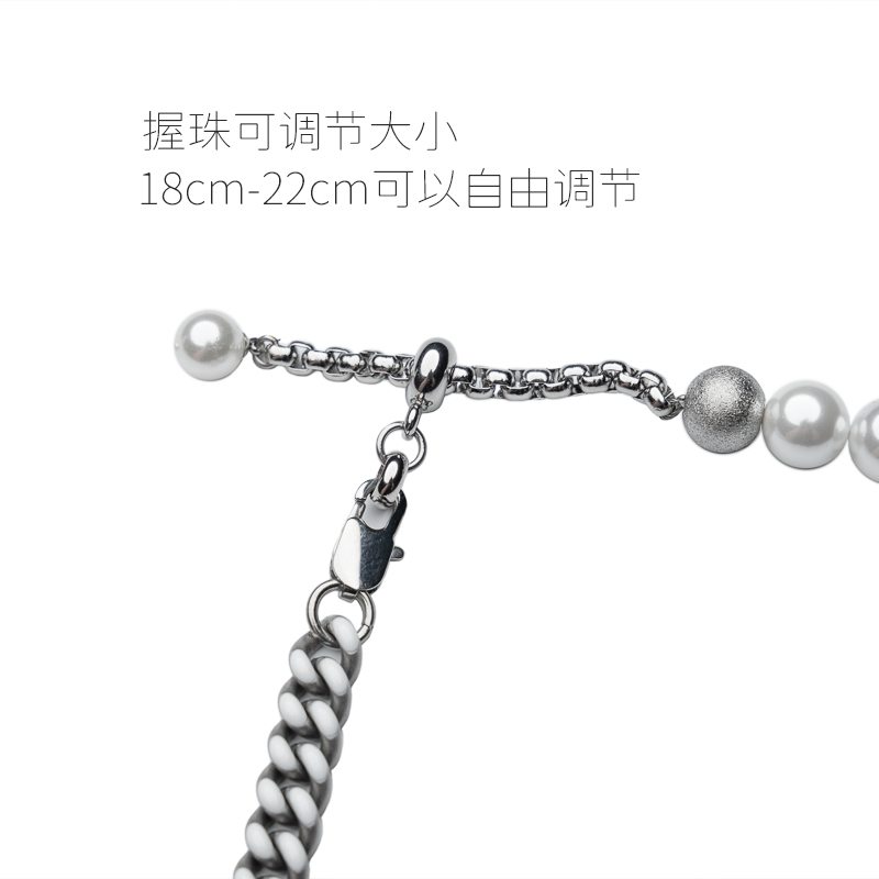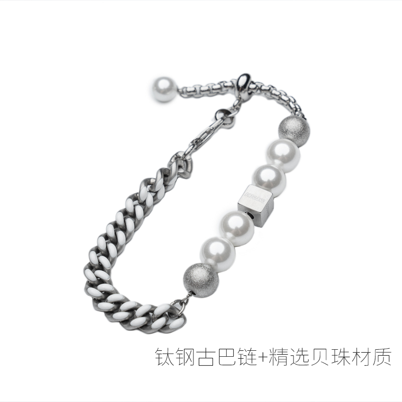 ICEGANG pearl titanium steel stitching Cuban chain Europe and the United States hip-hop hand double-sided fashion all-match trend jewelry ins