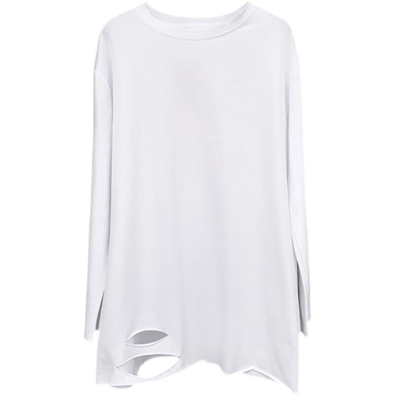 White bottoming shirt women's clothing 2022 new long-sleeved t-shirt women ins mid-length pure cotton loose inner top women