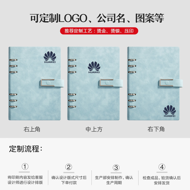 A5 loose-leaf notebook custom detachable cover inside page business simple work notepad thickened meeting record book b5 hard surface copy student diary hand book gift box set can print logo
