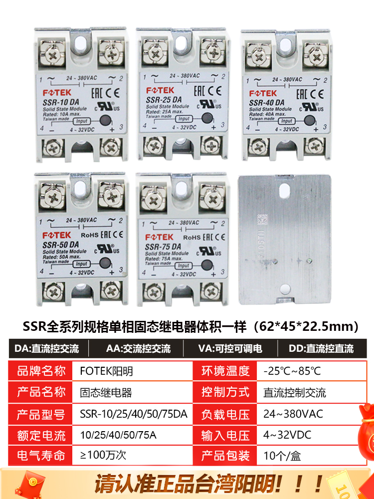 FOTEK Taiwan Yangming Single-phase Solid State SSR-10DA SSR-10DA 25DA 50DA 50DA Control Exchange-Taobao